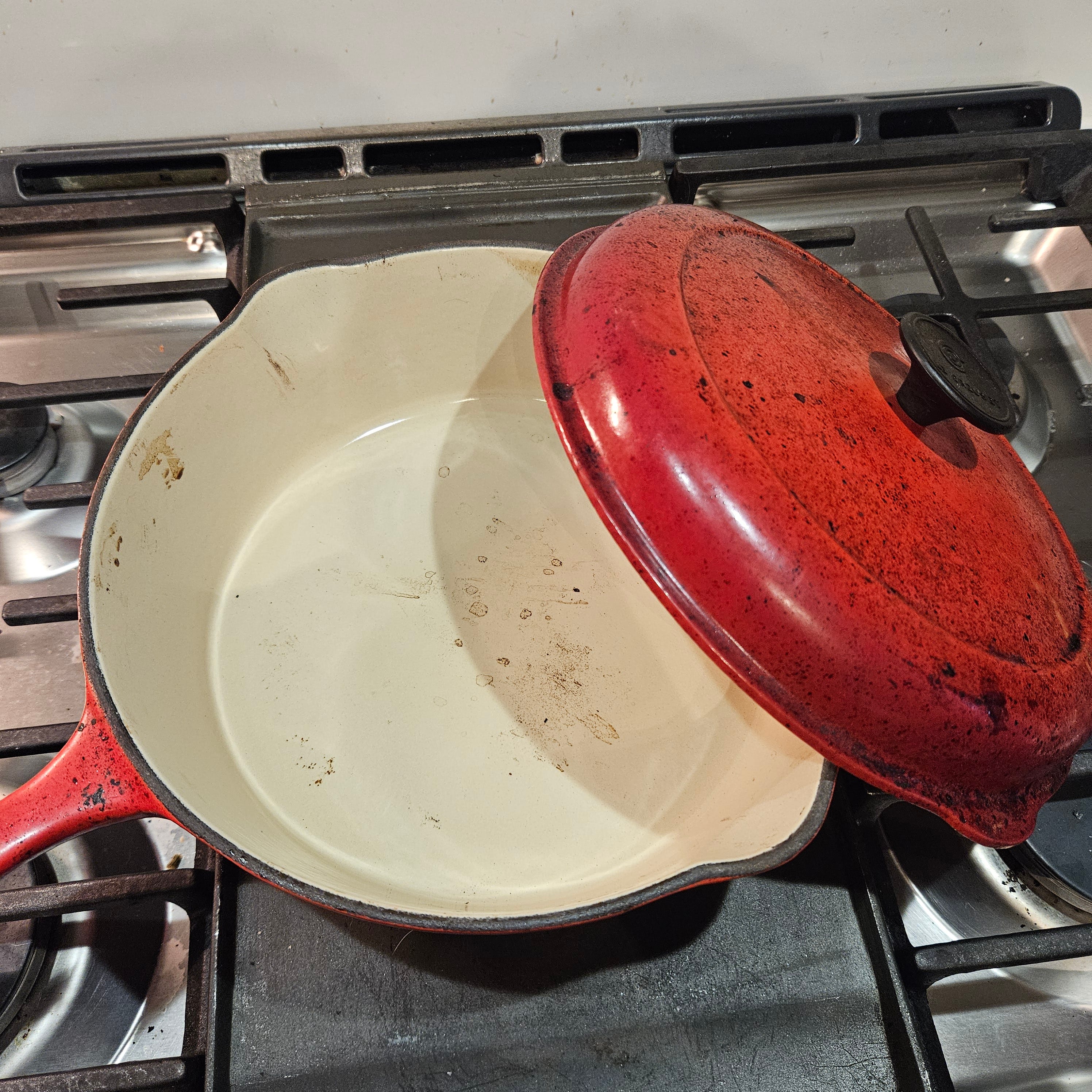 Enamel coated cast iron: Most commonly found in large pots (Dutch ovens) but you can also get smaller pots and frying pans in this style. Because of the enamel coating, you can cook acidic things in them for long periods of time. I do find food sticks in them, which isn’t always a bad thing because you can then deglaze them with wine or broth to release all that yumminess that has stuck to the pan. They can go from stovetop to oven, which, to me, is the most important thing in cookware. The most popular brand is Le Creuset, but there are lots of other manufacturers at various price points. You really do get what you pay for here, so I wouldn’t suggest you buy the cheapest ones. The higher-priced manufacturers typically have many more layers of ceramic, so they won’t chip as easily. Look for sales or warehouse outlets to find deals. Buy the largest one you can afford and have room for in your kitchen. Even though they sell all shapes and sizes of pots, there’s really no need to buy small ones.