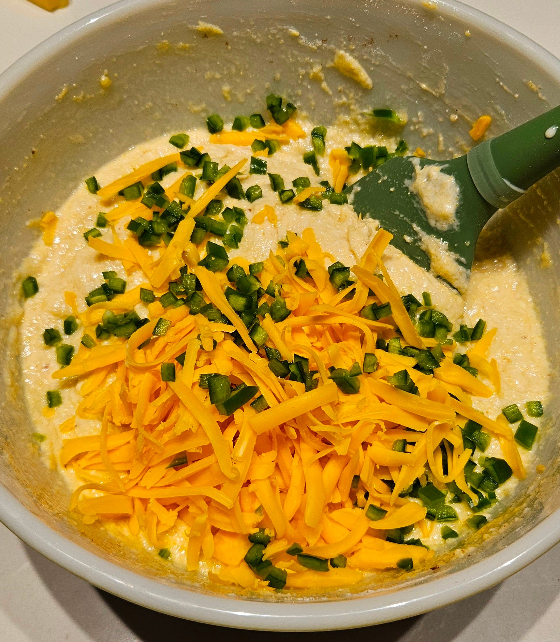 If you are adding the cheddar and jalapeño, do it now.