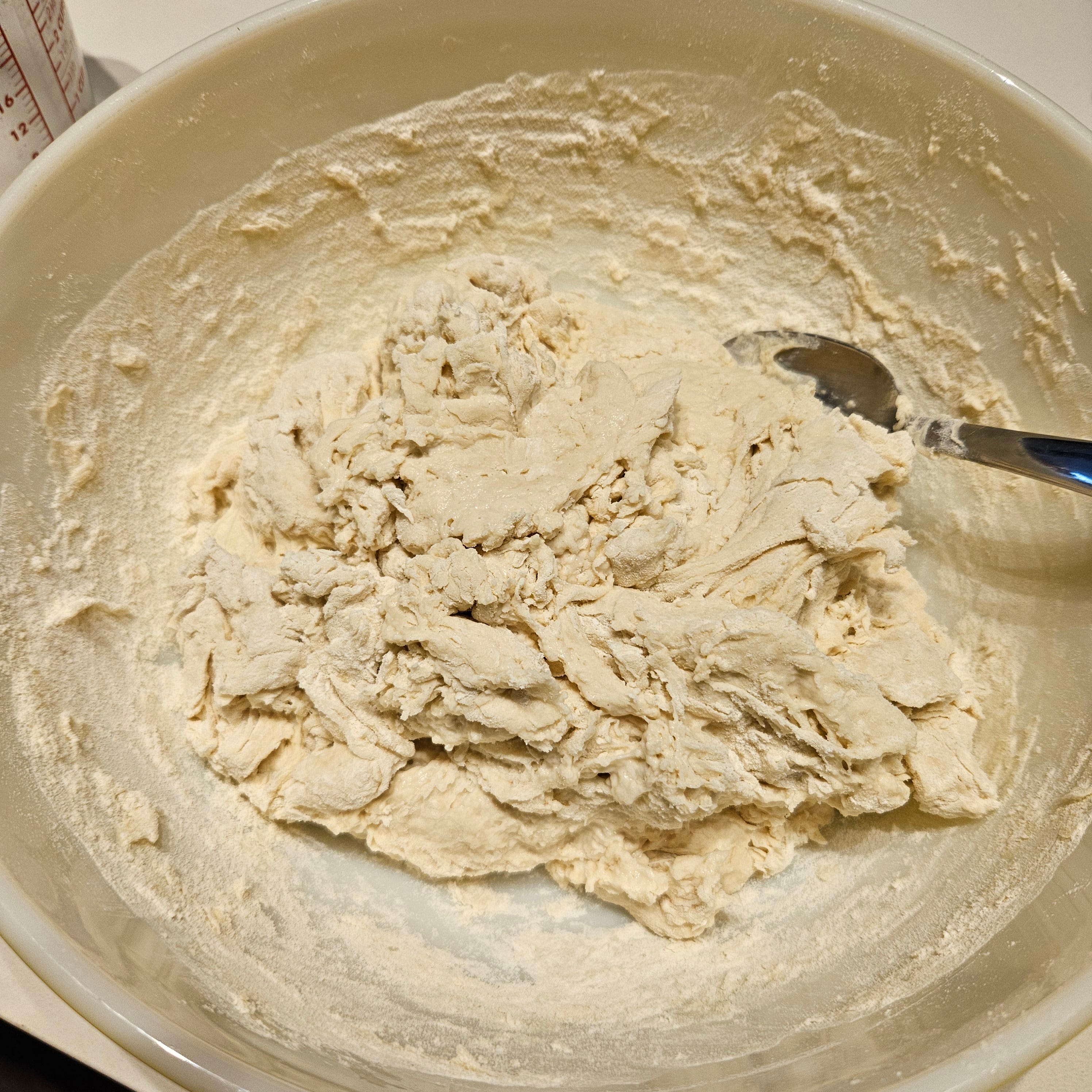 Friday, after work: the starter is likely nice and bubbly by now (if not, wait a bit longer) so I can start mixing my dough. This part of the process will take 3 hours, so make sure you start when have the time available to you.