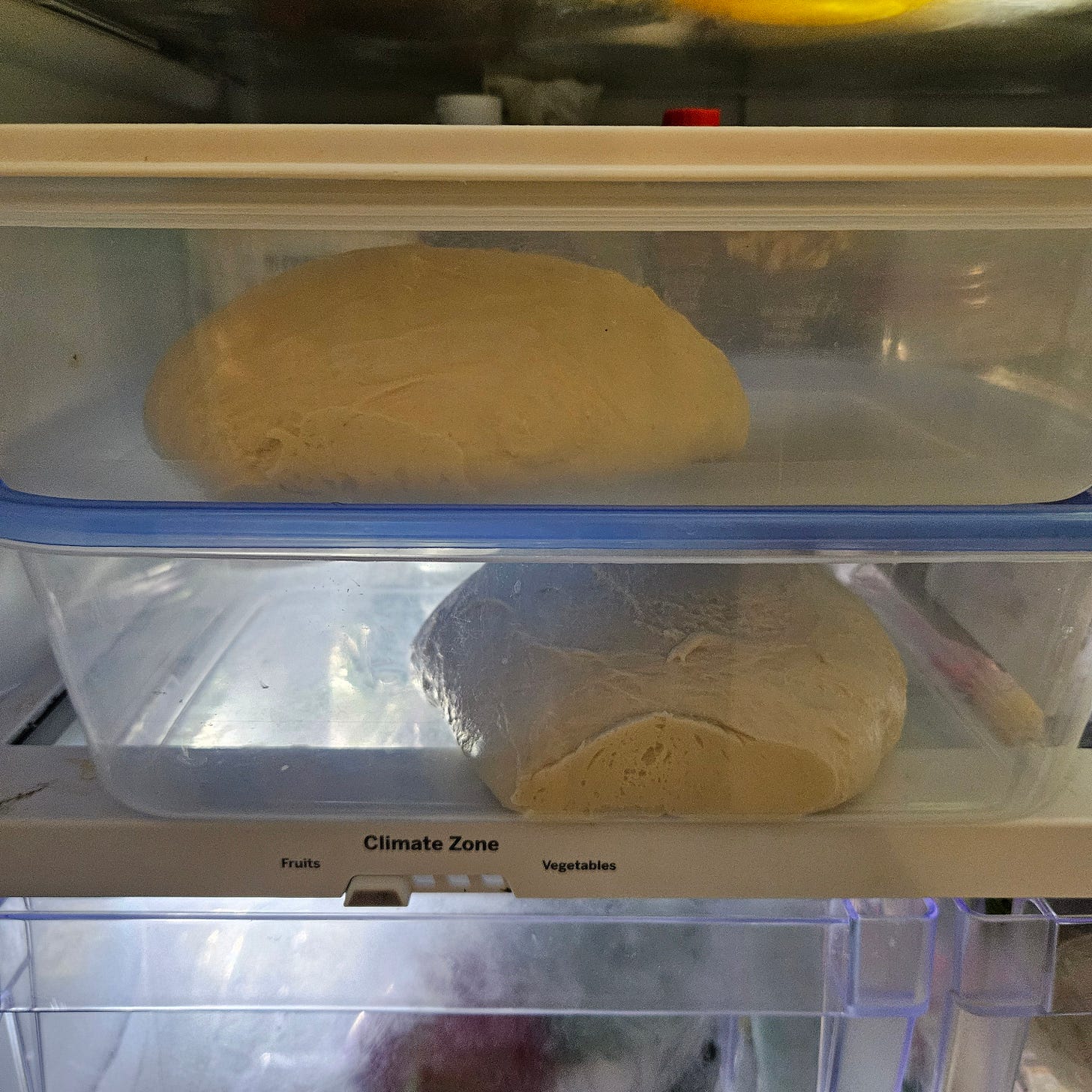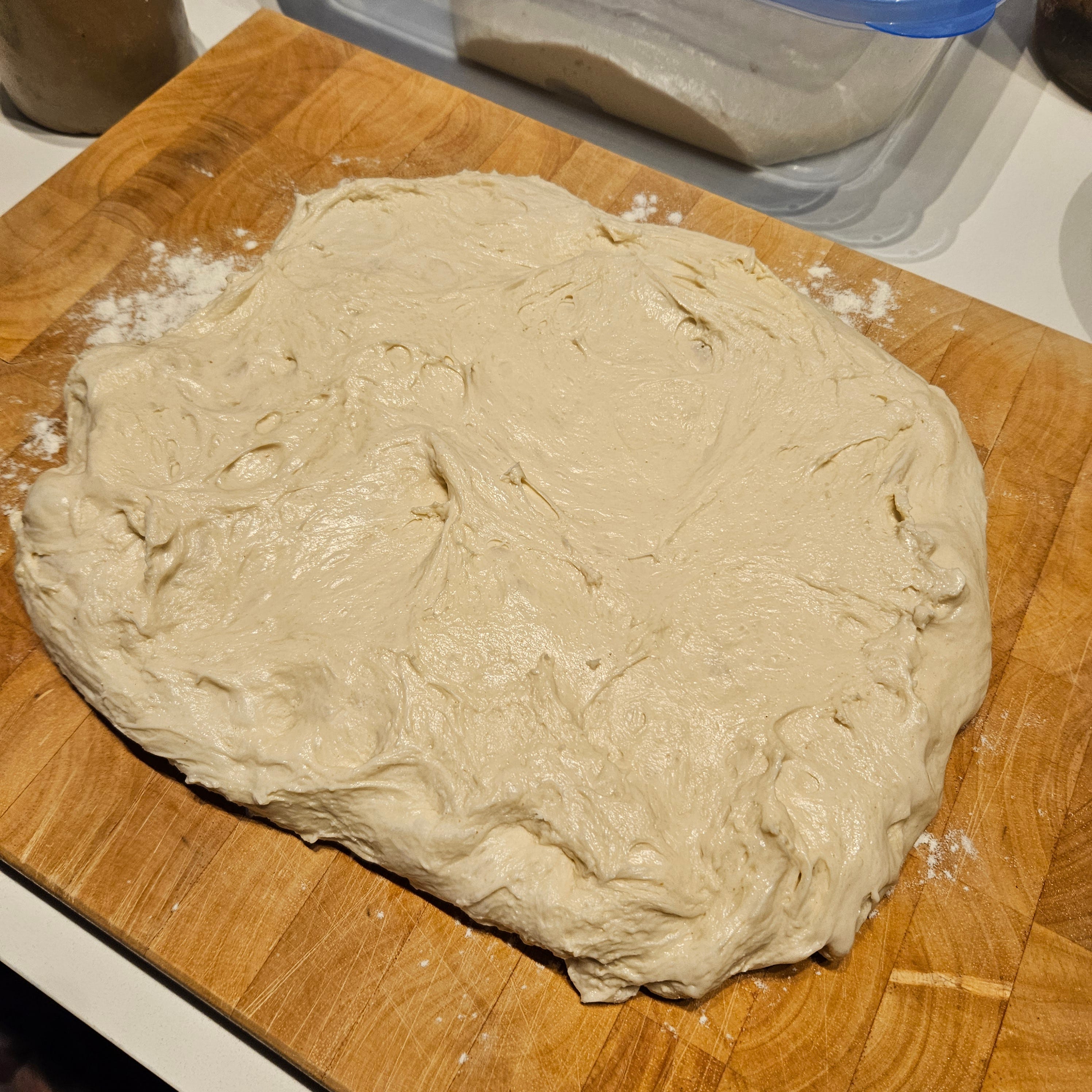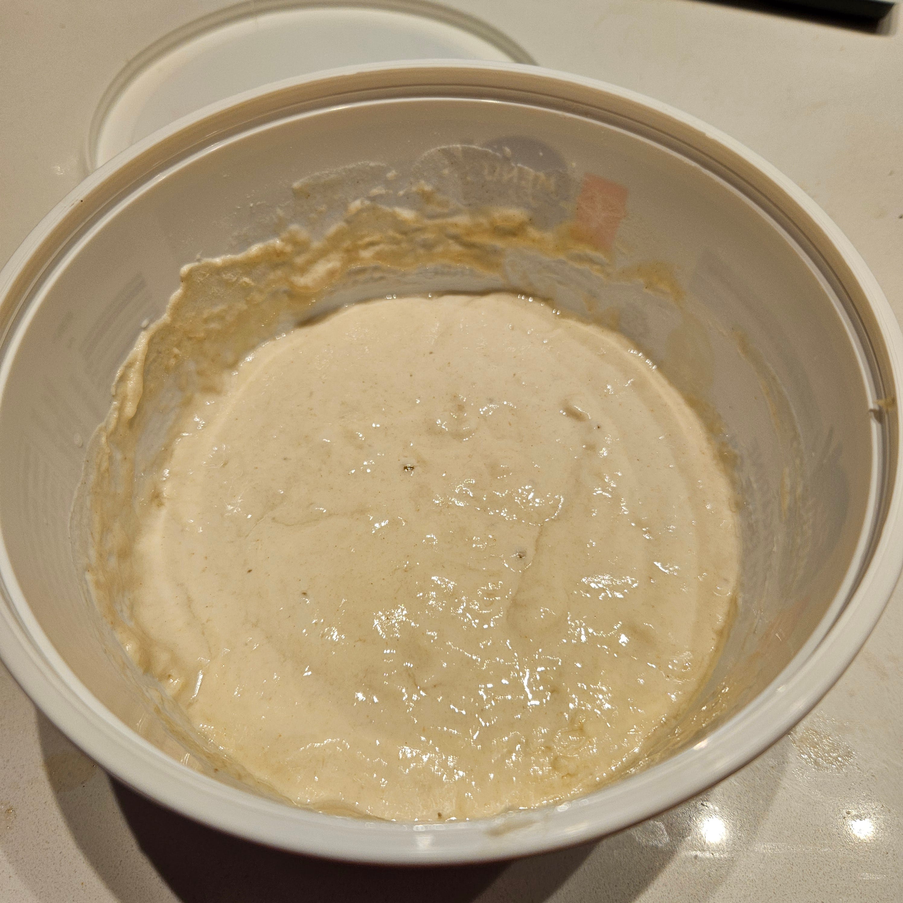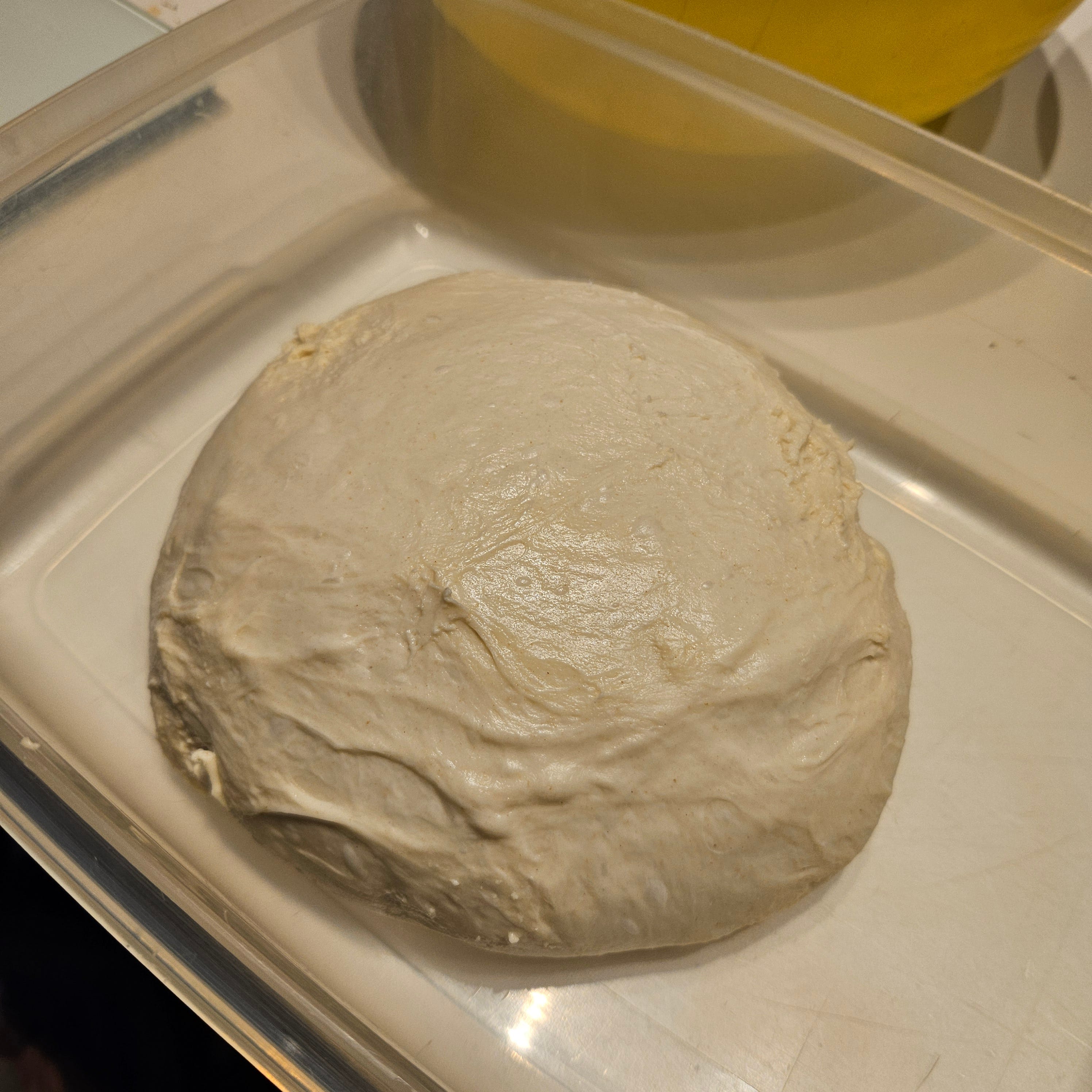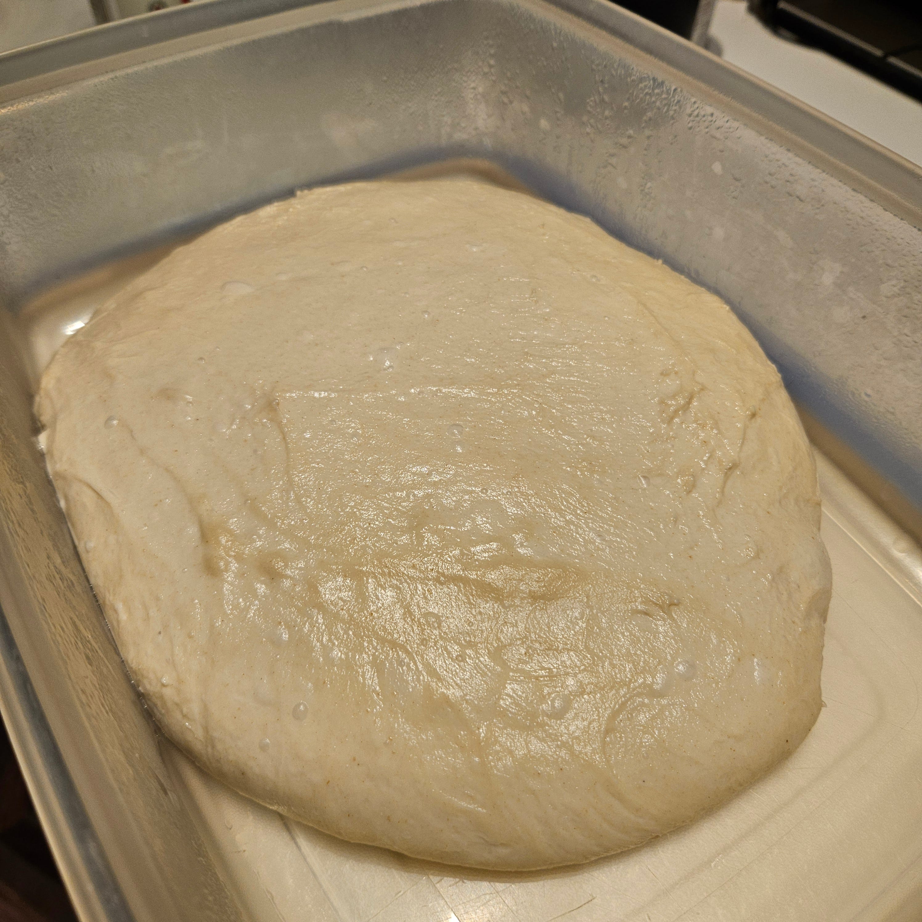 A plastic tub with tight-fitting lid large enough to hold the dough in the fridge overnight